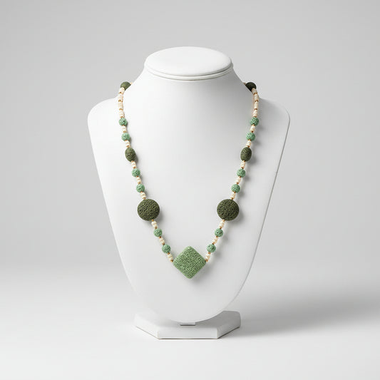 Collar largo de acero inoxidable con cuentas y piedras volcánicas