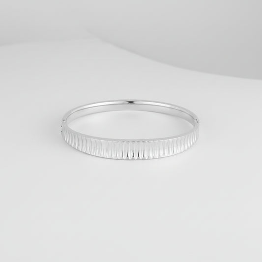 Pulsera rígida con abertura y diseño de líneas verticales