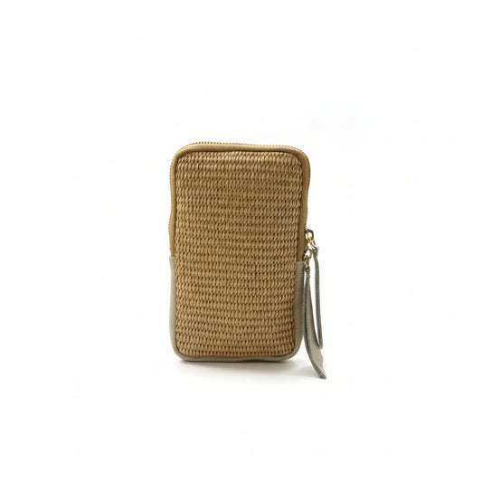 Bolso 100% piel y rafia para móvil con cierre de cremallera