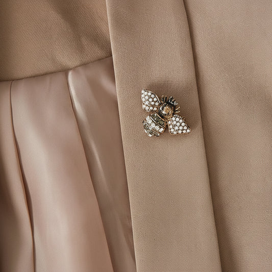 Broche en forma de abeja con circonitas y perlas acabado oro
