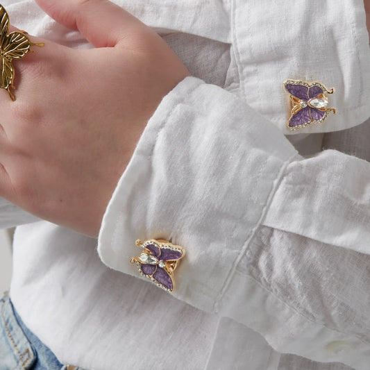Cubre botones en forma de mariposa blanca y con circonitas