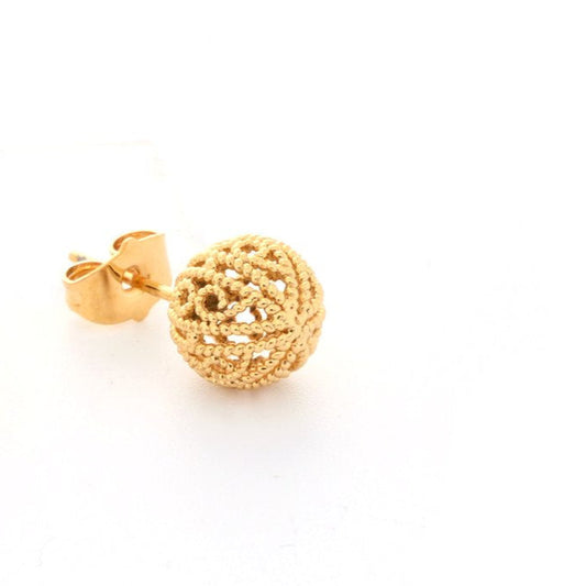 Pendientes semijoya bañados en oro y esferas con textura acabado oro - mbyou