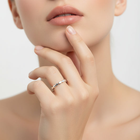 Anillo de acero con triángulos unidos entre sí acabado plata