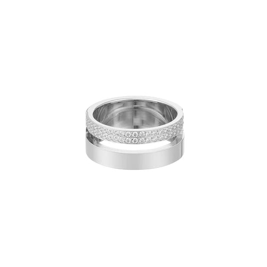 Anillo de acero con rayas de diferentes anchuras y textura rugosa
