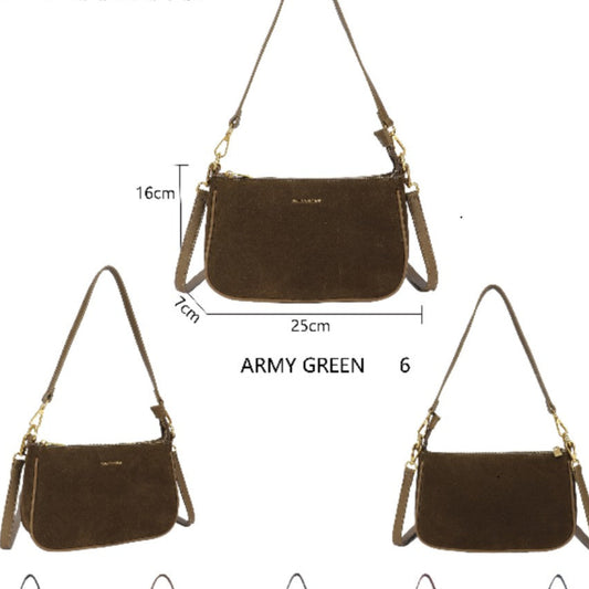 Bolso bandolera en formato saco con malla por la parte media del bolso en color verde grisáceo - mbyou
