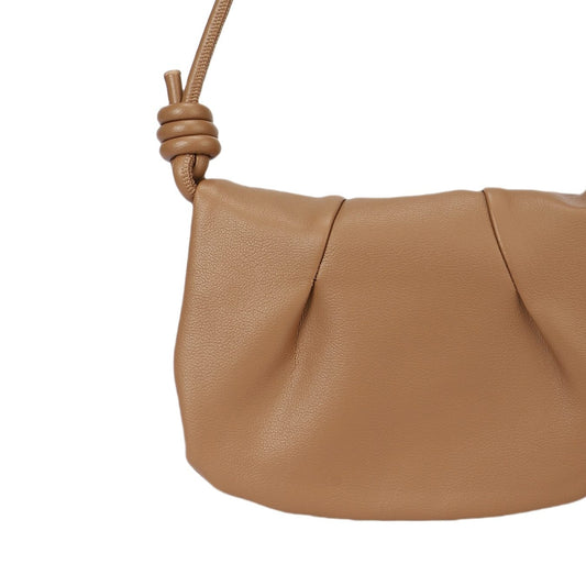 Bolso bandolera con solapa plisada y nudos color camel - mbyou