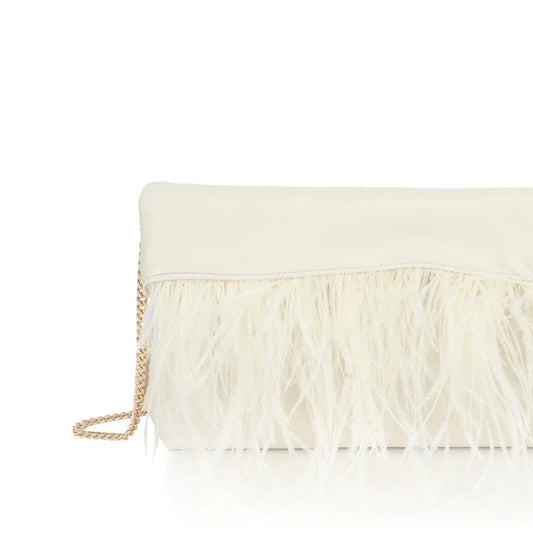Bolso bandolera estilo napa con plumas color beige - mbyou