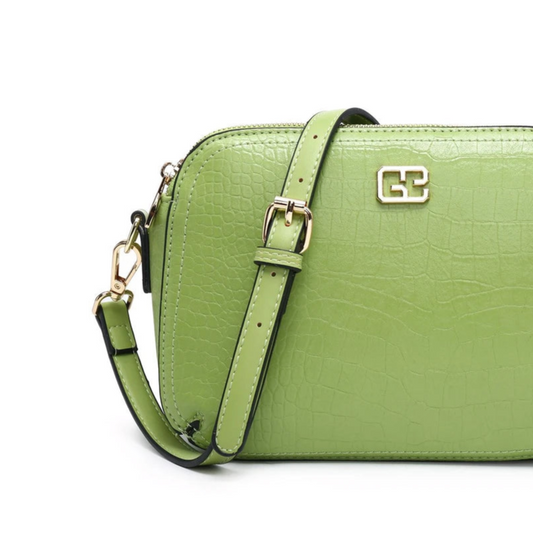 Bolso bandolera efecto cocodrilo con detalle de marca color verde claro - mbyou