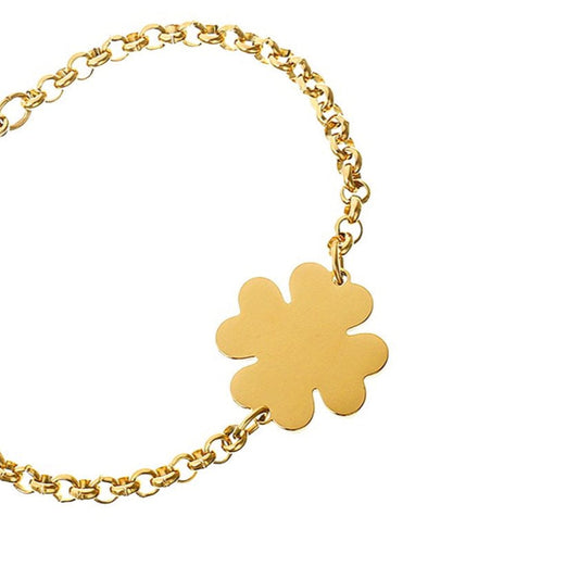 Pulsera de acero inoxidable con trébol de cuatro hojas acabado oro - mbyou