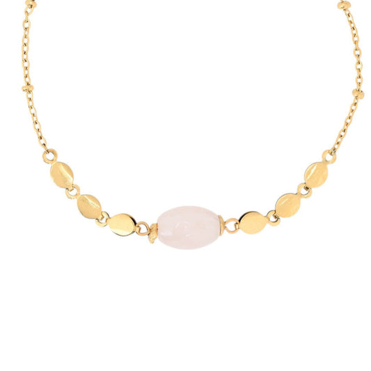 Pulsera de acero inoxidable con piedra redonda de color rosa acabada oro - mbyou