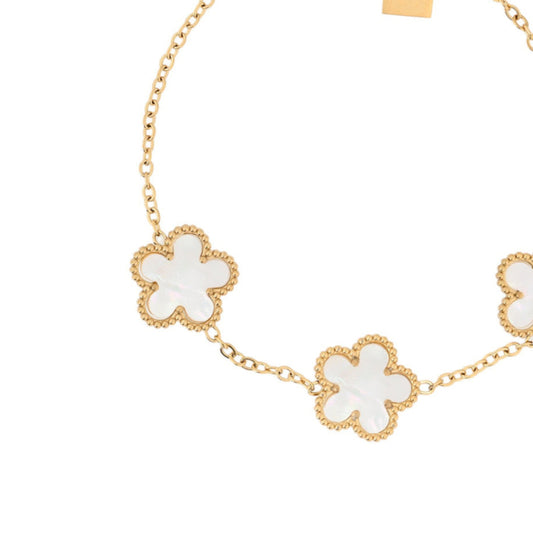 Pulsera de acero inoxidable con tréboles blancos de nácar acabado oro - mbyou