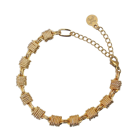 Pulsera de acero inoxidable eslabones cubiertos de cordón textura acabado oro - mbyou