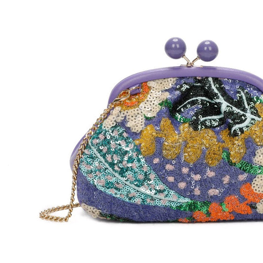 Bolso de fiesta de mano y bandolera con cierre vintage y lentejuelas con motivo floral acabado lila y amarillo - mbyou