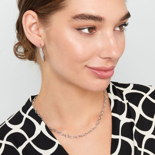 Pendientes largos de acero pulido mate con diseño geométrico acabado plata - mbyou