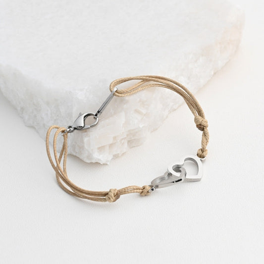 Pulsera cuerda marrón y acero acabado plata con distintas formas - mbyou