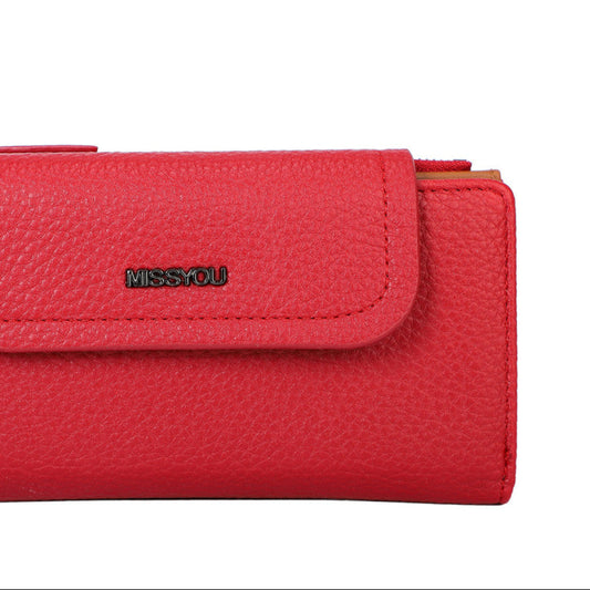 Monedero en formato solapa de tamaño grande y efecto piel en color rojo fuerte - mbyou