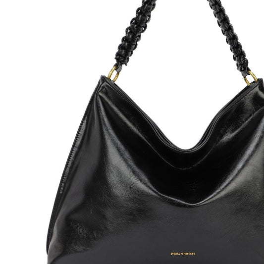 Bolso tipo shopper grande con asa trenzada y acabado brillante color negro - mbyou