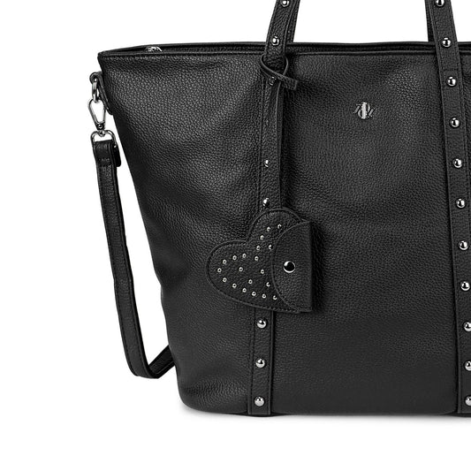 Bolso tipo shopper grande con tachuelas plata y corazón colgante color negro - mbyou