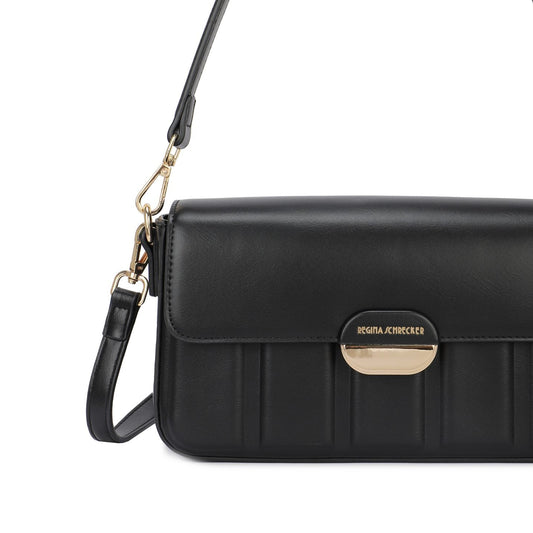 Bolso con patrón de líneas verticales en relieve con solapa y broche en acabado oro color negro - mbyou