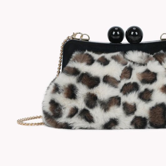 Bolso de mano fiesta con pelo animal print blanco y negro