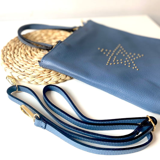 Bolso de piel auténtica 100% vacuno tipo shopper azul con estrella dorada - mbyou