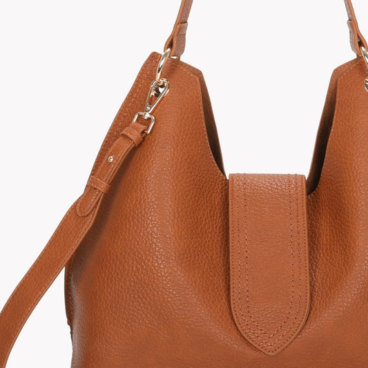 Bolso bandolera shopper cierre solapa camel efecto piel - mbyou