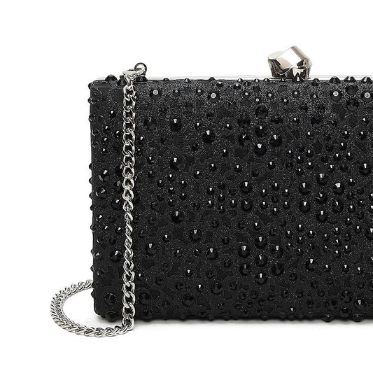 Bolso de mano tipo clutch con brillantes y acabado plata color negro - mbyou