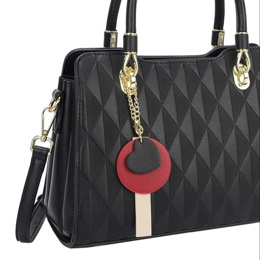 Bolso de mano con estampado geométrico en parte trasera y liso con el logo en dorado color negro - mbyou