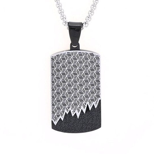 Collar de hombre de acero inoxidable con doble estampado en negro acabado plata