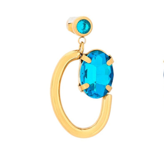 Pendientes largos de acero ovales con cristal azul turquesa acabado oro - mbyou