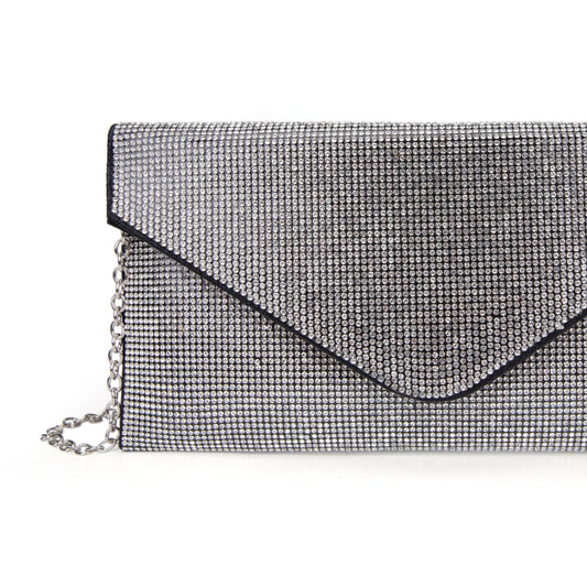 Bolso de fiesta tipo sobre con brillos en color negro