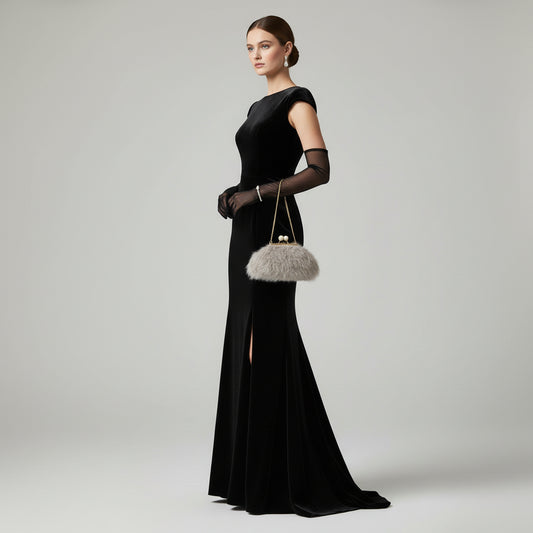 Bolso fiesta de mano pelo gris ceniza claro
