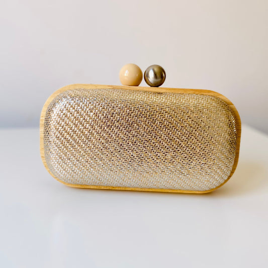 Bolso fiesta de mano de madera tipo rafia acabado plata