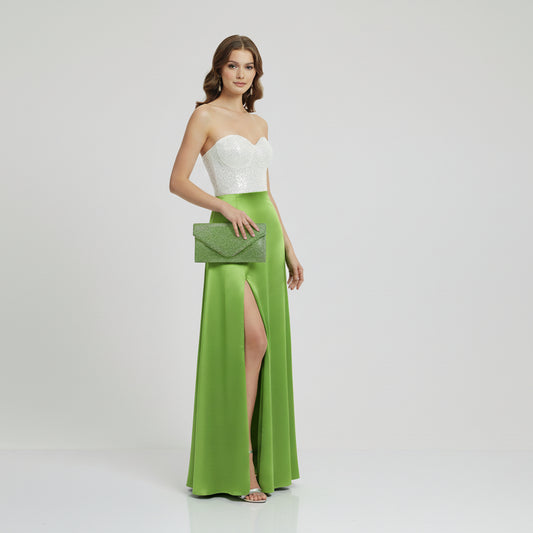Bolso de fiesta tipo sobre con brillos en color verde