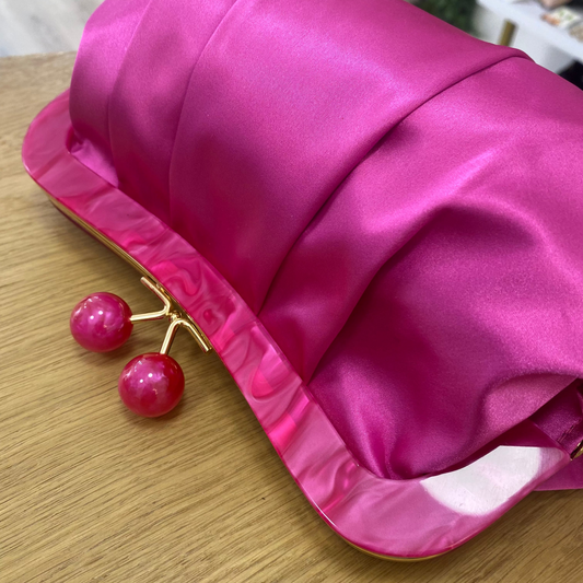 Bolso de fiesta estilo vintage de raso liso y nácar en color fucsia - mbyou