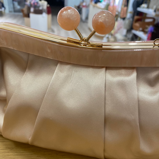 Bolso de fiesta estilo vintage de raso liso y nácar en color rosa nude - mbyou