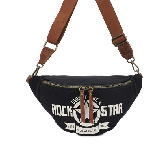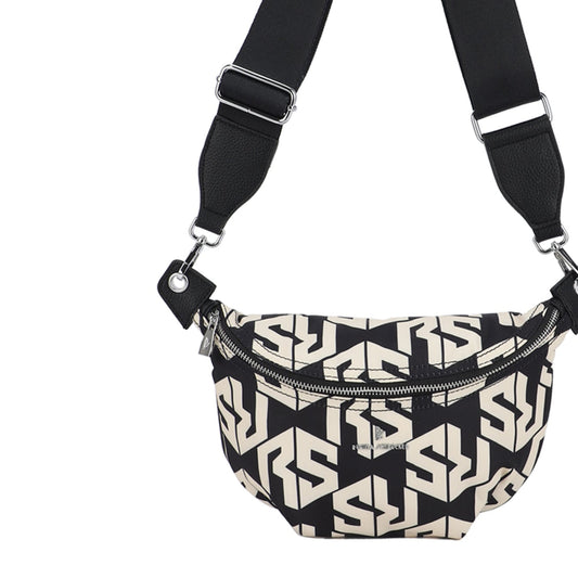 Riñonera de tela con estampado geométrico en blanco y negro - mbyou