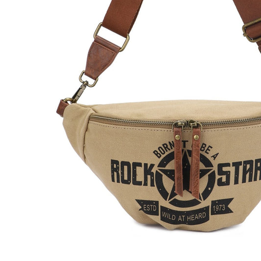 Riñonera de tela con estampado geométrico en beige - mbyou