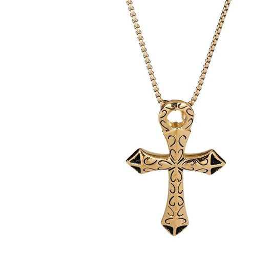 Collar de hombre de acero inoxidable con cruz egipcia grande acabado oro y negro - mbyou