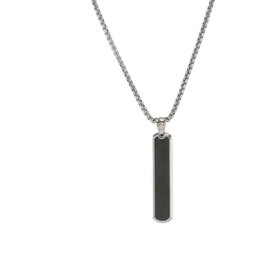 Collar de acero inoxidable con colgante alargado con fondo negro acabado plata - mbyou