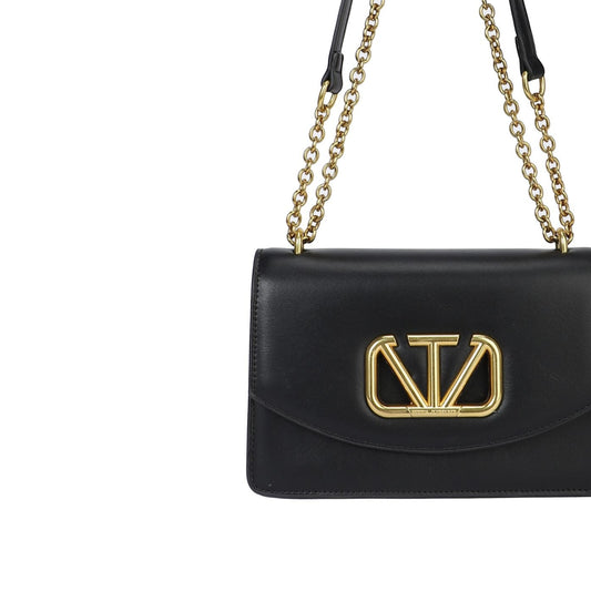 Bolso bandolera rígido con solapa y detalle de logo dorado color negro - mbyou