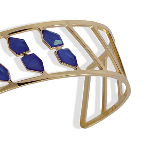 Pulsera brazalete de acero quirúrgico con piedras de cristal en tonos azules acabado oro - mbyou