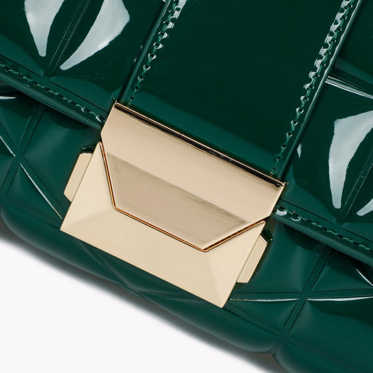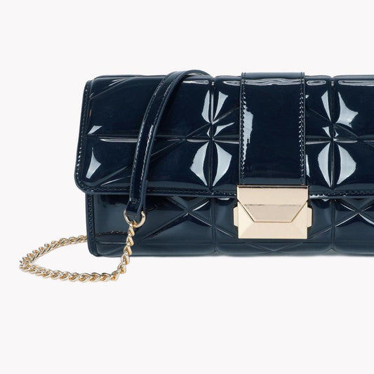 Bolso baguette de charol acolchado azul noche con cierre dorado