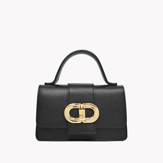 Bolso de piel 100% auténtica con asa y detalle dorado color negro - mbyou