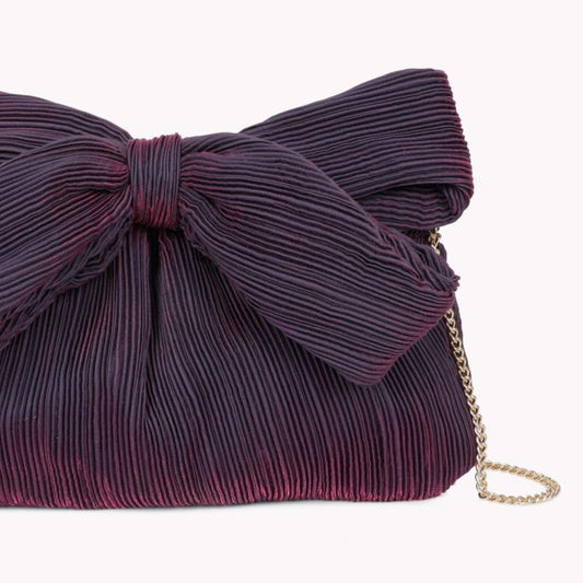 Bolso de fiesta tejido arrugado con lazo tipo limosnera púrpura - mbyou