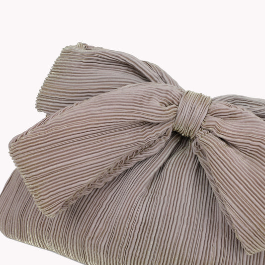 Bolso de fiesta tejido arrugado con lazo tipo limosnera beige/rosa nude