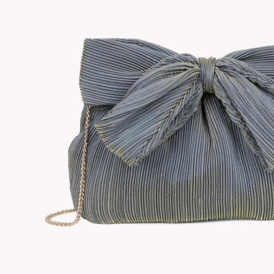 Bolso de fiesta tejido arrugado con lazo tipo limosnera azul atornasolada en dorado - mbyou