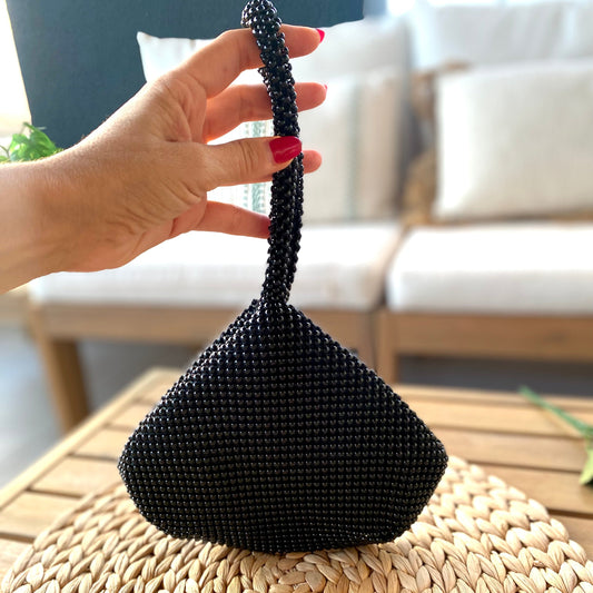 Bolso de fiesta con pedrería de bolitas brillante negro