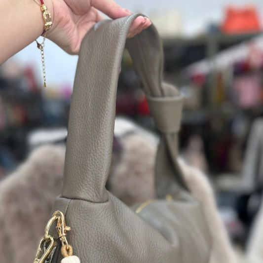 Bolso de piel auténtica liso tipo baguette color topo y detalle nudo en asa - mbyou