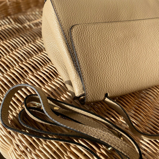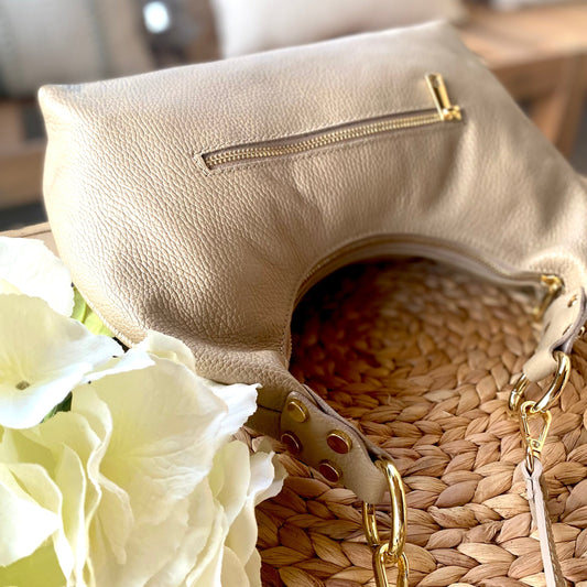 Bolso liso de piel 100% auténtica beige con detalle tachuelas doradas en la hombrera - mbyou